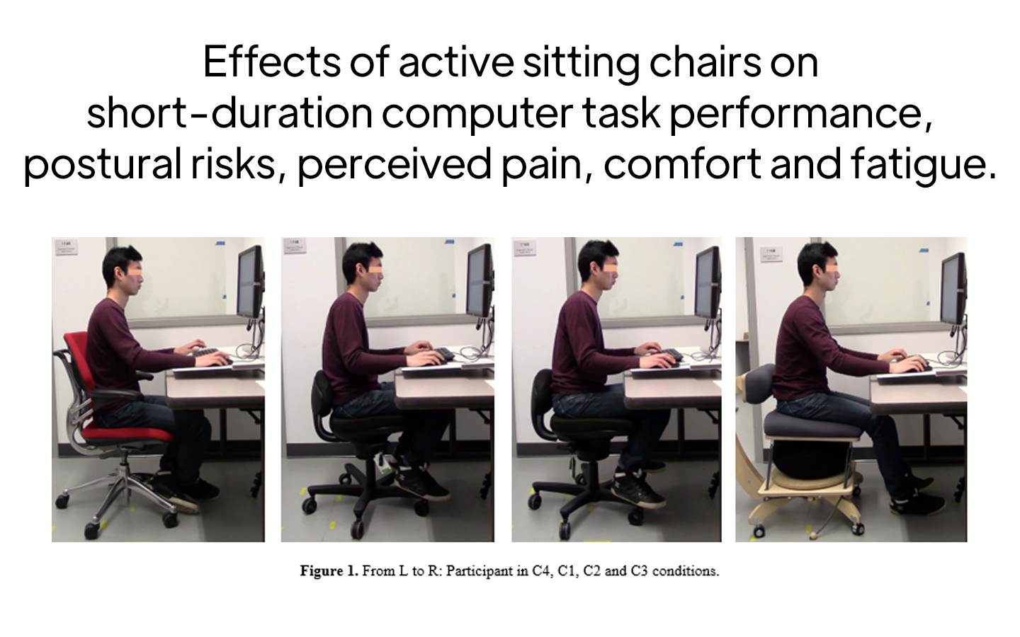 Effects of active sitting/standing chairs on short-duration computer task performance, postural risks, perceived pain, comfort and fatigue. 2 published by HFES 2017